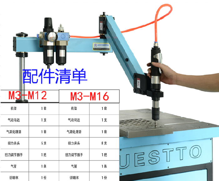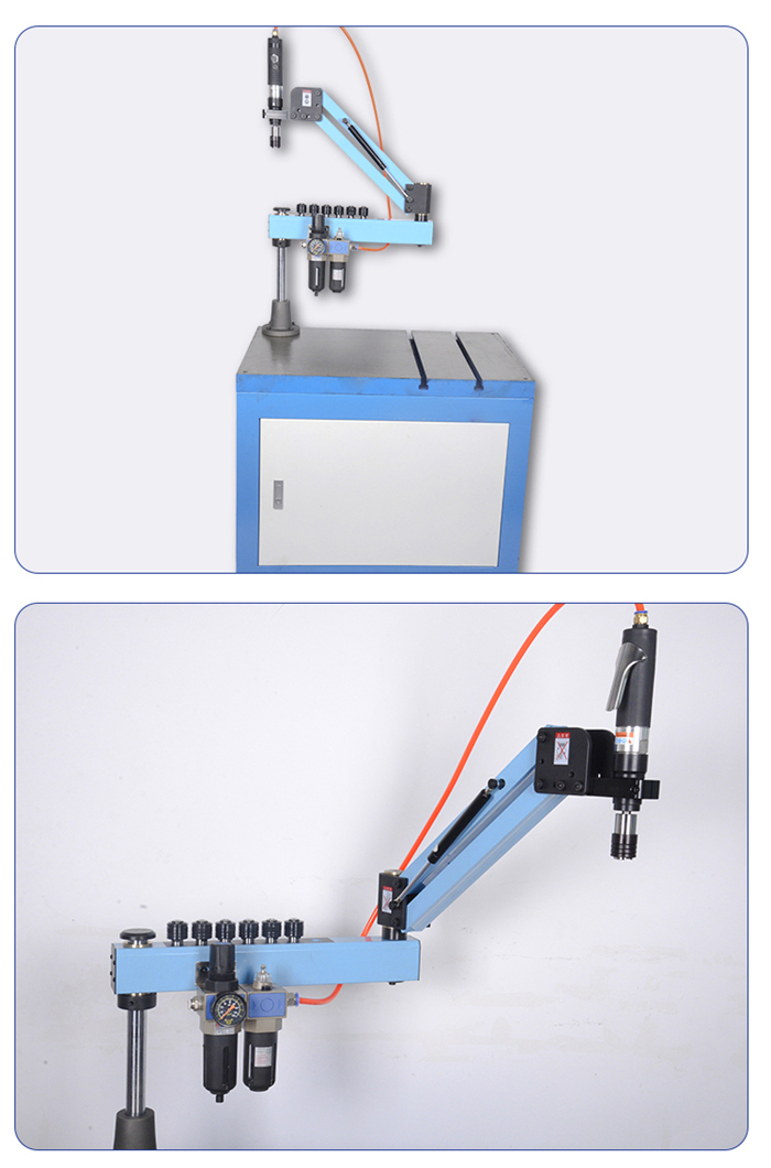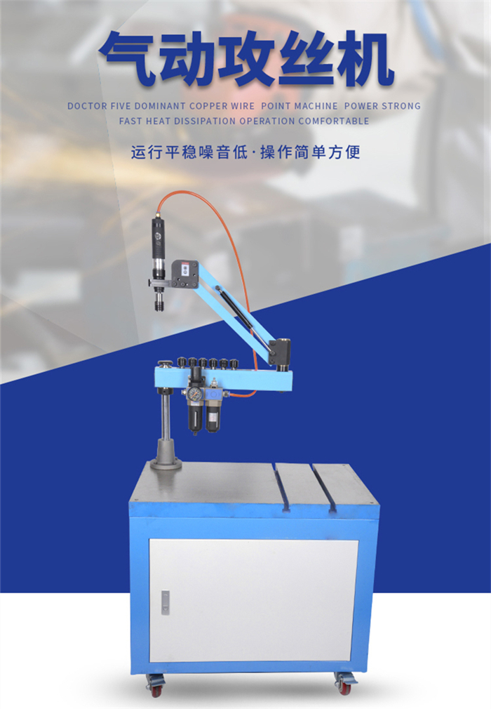 氣動攻牙機:價格便宜!經(jīng)濟!以輕便、靈活、高效以及具有其它類似設備無法取代的優(yōu)點。新款氣動攻絲機避免了車床、鉆床或手動攻絲的局限,省時、省力、不易爛牙、絲錐不易折斷等。