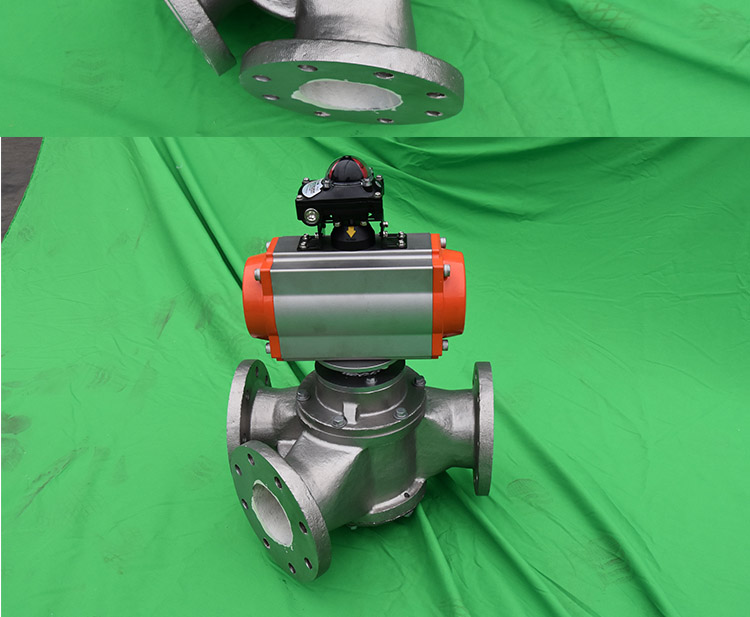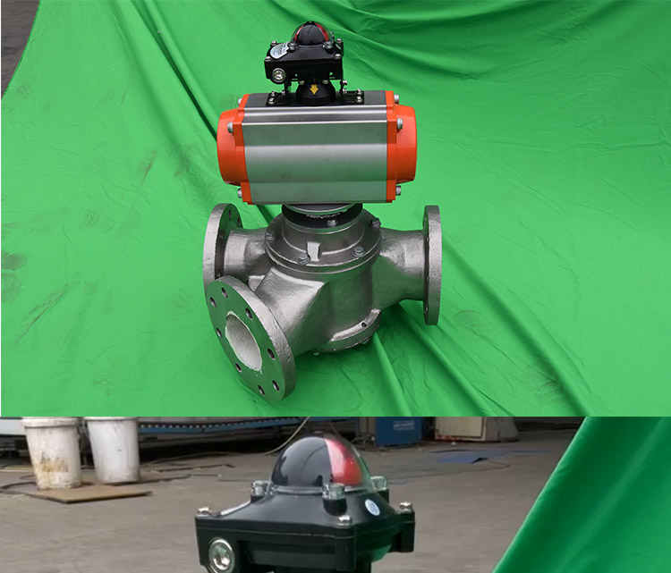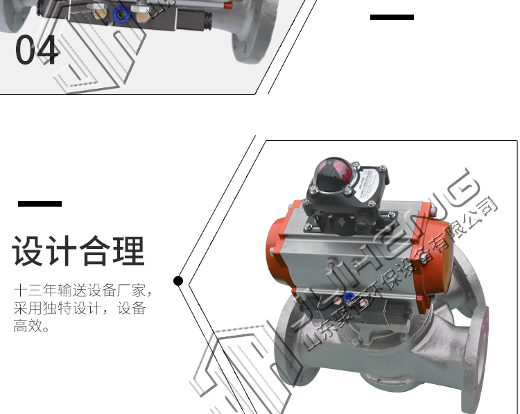 氣動(dòng)分路閥在輸送系統(tǒng)中起著管路切換的作用,可以改變輸送物料流向的作用,采用旋塞式結(jié)構(gòu),密封可靠,換向靈活。適用于粉料和顆粒物的方向切換。在控制方面,采用氣缸或電動(dòng)執(zhí)行器帶動(dòng)旋塞換向,并安裝磁性開關(guān),指示并控制氣缸換向,電磁換向閥控制進(jìn)、排氣,實(shí)現(xiàn)換向。
